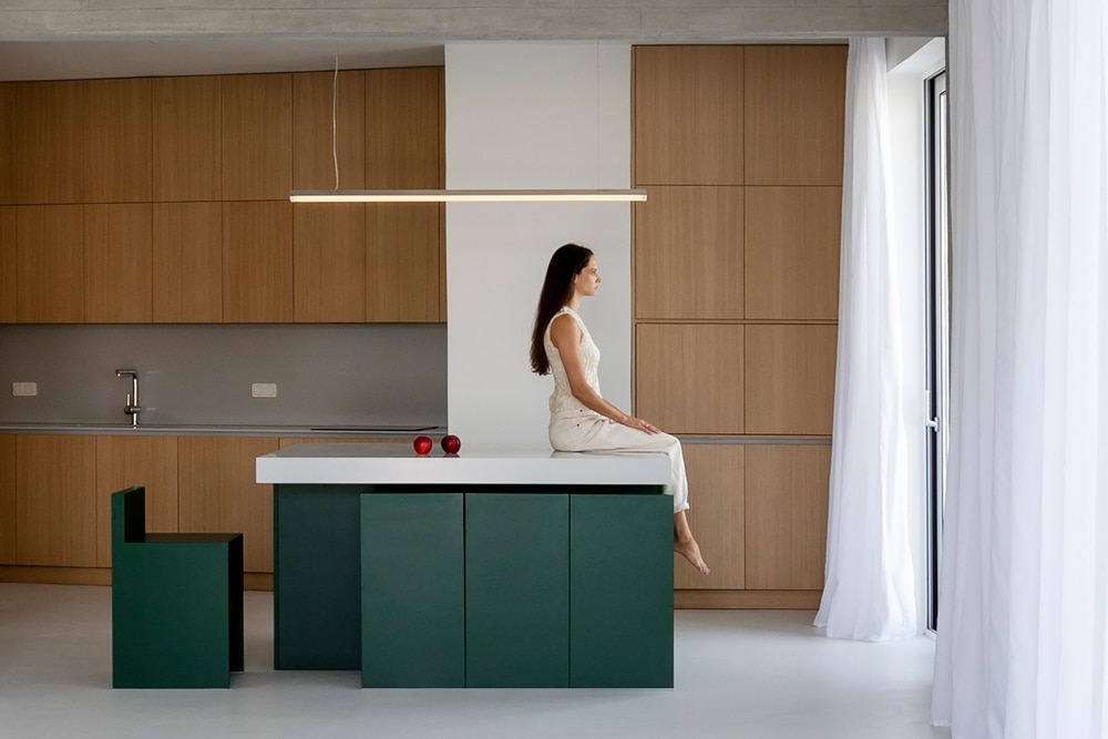 Theo Poulakos in collaboration with Manos Botsaris have redefined the concept of urban living in Athens by transforming two separate apartments within a traditional Athenian polykatoikia. The 6th-floor apartment now serves as the primary residence for the owners, while the 7th-floor hosts an independent guest room, showcasing innovative design concepts that prioritize space, light, and functionality.