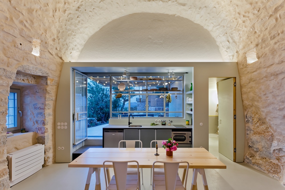 Z-level Architecture firm has restored a once-vibrant café-grocery, transforming it into a contemporary dwelling, where time-honored heritage converges with visionary design in the heart of Mani, Laconia. “Thick stone walls, niches, flagstone floors, and an egg-shaped stone cistern built into the earth for rainwater collection, all give us a glimpse of how people in the past rationally managed locally available resources for their construction and working needs. They interacted with the place and time and implemented viable architectural solutions that are still relevant today”, says the architecture team.