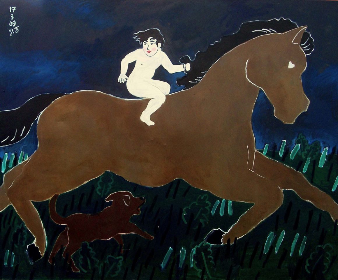 Now, I am trying to return to my former and simpler painting, having already found new solutions, new themes or, better, themes of my era. The works of that era seemed to reflect something old, such as Satyrs (influenced by Picasso) or white women with attractive curves (the ideal beauty of older times); new stylistic features, distancing from the influences of Moralis or Matisse (two of my favorite painters), but I have to go for my own.
