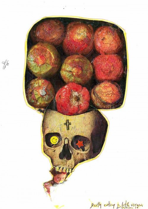 Patsios’ art questions the contemporary socio-political life and seems to become an artistic manifesto, which points to its creators’ anxious concerns about the current affairs. The deep understanding of the history of art and the influences from expressionism and surrealist automatism, as well as conceptual art and pop culture, are filtered and revealed through the mixed media technique which characterizes both his paintings and sculptural pieces. Patsios’ technique includes the exceptional use of line, which he comfortably and at the same time dynamically repeats in all his work, irrespectively of the theme. These hybrid-works result from the use of color, applied in different densities, in combination with the spontaneous integration of seemingly mismatched materials in the composition. Through these technical practices, and through the verbal terms and the symbolic forms he incorporates in his work, many of Patsios’ paintings include allegories which correspond to subliminal meanings and which shape the moral and spiritual ideas that he wishes to communicate.