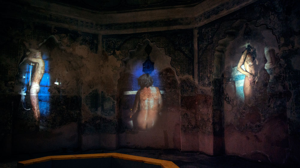 Shadow Atonement was originally designed for the Ottoman monument “Baths of Paradise” (aka Bey Hamam) in Thessaloniki, directly relating to its function as one of the city’s most popular public baths throughout the centuries. The architectural context in which it was presented, the space geometry, the acoustics and the resulting mood comprised an integral part of the artwork. The project was organized by the Museum of Photography in cooperation with the 9th Ephorate of Byzantine Antiquities as part of PhotoBiennale’s Parallel Program.