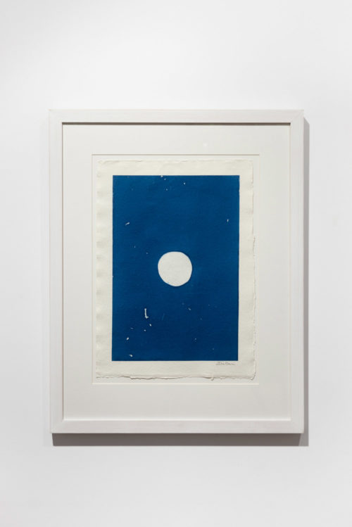 Visually, the works explore variations of the circular shape and consequently, the embedded notions of flow and continuity. This specific project stands as a new creative chapter for the photographer, in which she works with forms inspired by the realms of painting, to embrace the elements of water and air, and to bring her artworks alongside her digital world. This gentle approach to printmaking comes hand in hand with the use of delicate papers from Japan, Tibet, Nepal and India, and in conjunction with works linen and papyrus. Each cyanotype is unique and made entirely as a collaboration of the hand and the sun.