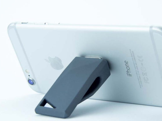 Greek designers Ilias Kalogeropoulos and Meletis Michelakakis created Stikey, an ultra-portable, magnetic stand for smartphones that works in any orientation.