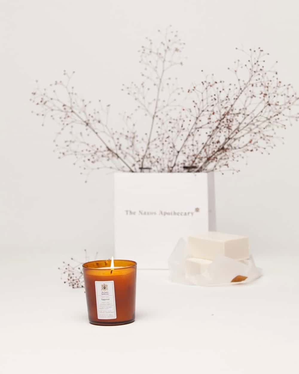 The Eggares scented candle โ a warm, resinous blend of cinnamon, bergamot and clove, layered with labdanum, cashmere woods and a deep base of sandalwood, cedar and amber. A distilled mood of the island in winter light.
