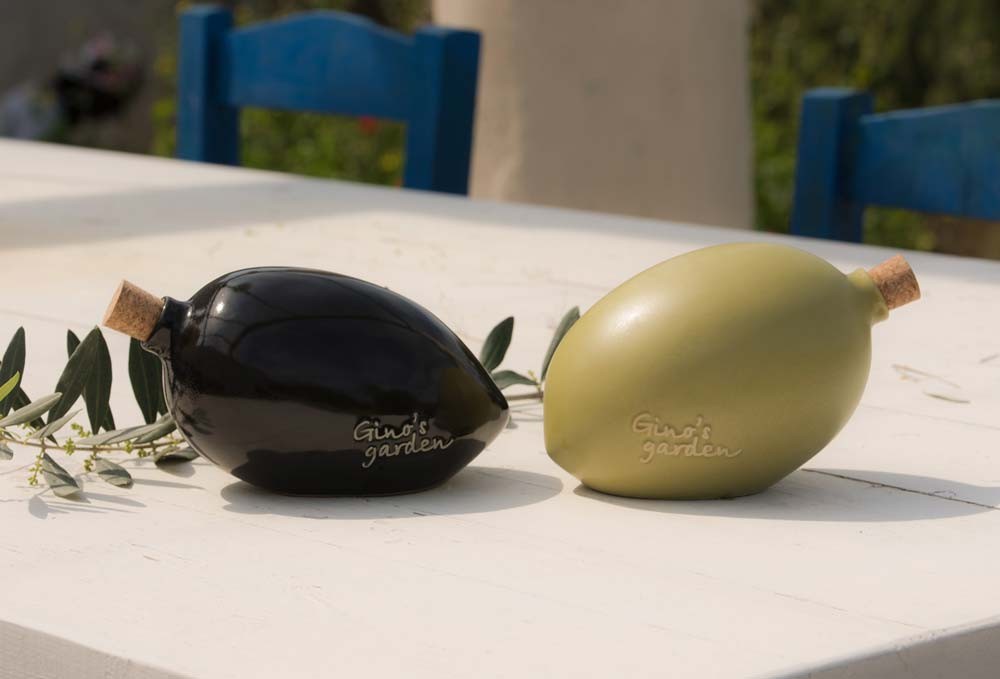 Gino’s garden is an organic olive oil from the region of Rihaneh in Lebanon whose bottle’s unique, irregular design makes it a small piece of art.Each year, a limited quantity of olive oil is handpicked and cold pressed within six hours, creating the finest quality of olive oil one could get from the grove of Gino Haddad. In order to reflect the organic approach and limited production, a custom made bottle was specially designed to portray the uniqueness of Gino’s olive oil. Two different types of uneven olive shaped bottles were drawn, using mathematical techniques to calculate the irregular shape and volume. The ceramic bottles were brought to life by the skilful hands of Stelios Laskaris, in black gloss and green matte glaze finishes. Gino’s garden organic olive oil is designed in Cyprus, produced in Greece and enjoyed in Lebanon.