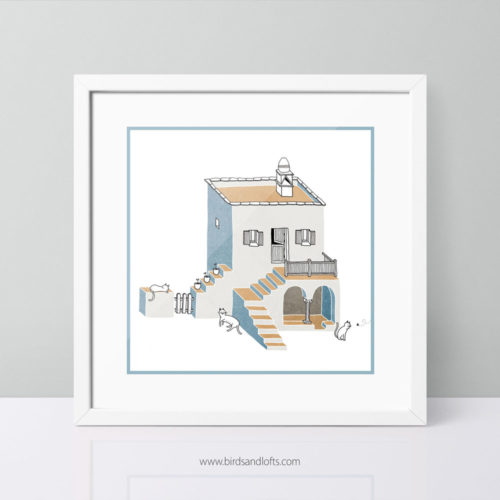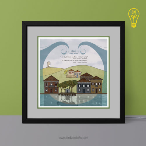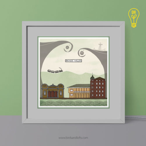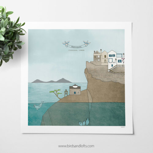 Birds & lofts products are designed and printed in Greece. They include high quality digital prints of original illustrations, such as postcards, posters or light-boxes and they are available in art and souvenir shops all around Greece, as well as the Benaki Museum Shop.