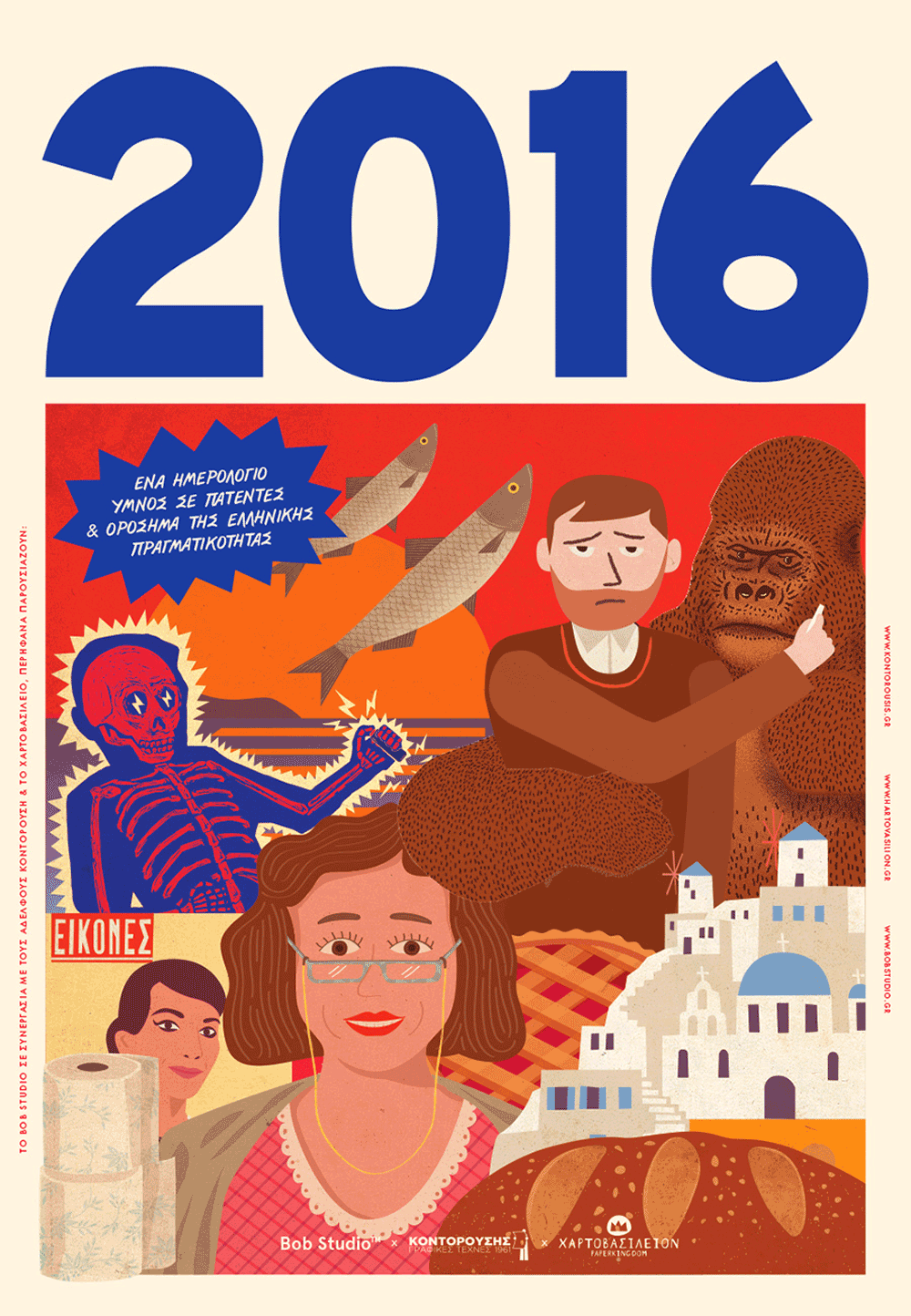 Designed by Bob Studio, Paperkingdom’s 2016 calendar is dedicated and inspired from Greek Patents. It consists of twelve unique illustrations, and it depicts actual Greek creations, popular and less known patents, but also humoristic aspects of unique patents, that no one has “managed” to copy (e.g cheesepie with chocolate milk comb, the Greek Mother etc). Hartovasilion was founded in 2006 aiming at creating and producing utilitarian paper products. The company’s objective is to promote Greek design through the creation of objects of everyday use, by combining high-standard aesthetics with top-quality production in Greece. To date, it has won a number of important distinctions both on a national and international level (Ermis Awards, E.V.G.E – Greek Awards of Graphic Design & Illustration, Red Dot Design Awards and E.D.A.)