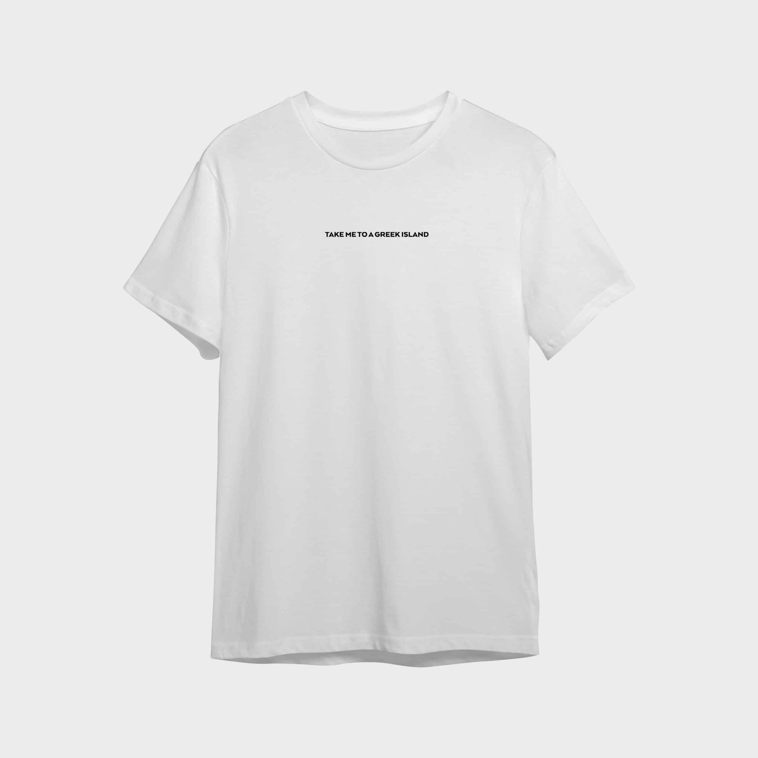 โTake me to a Greek islandโ T-shirt (White) โ โฌ45