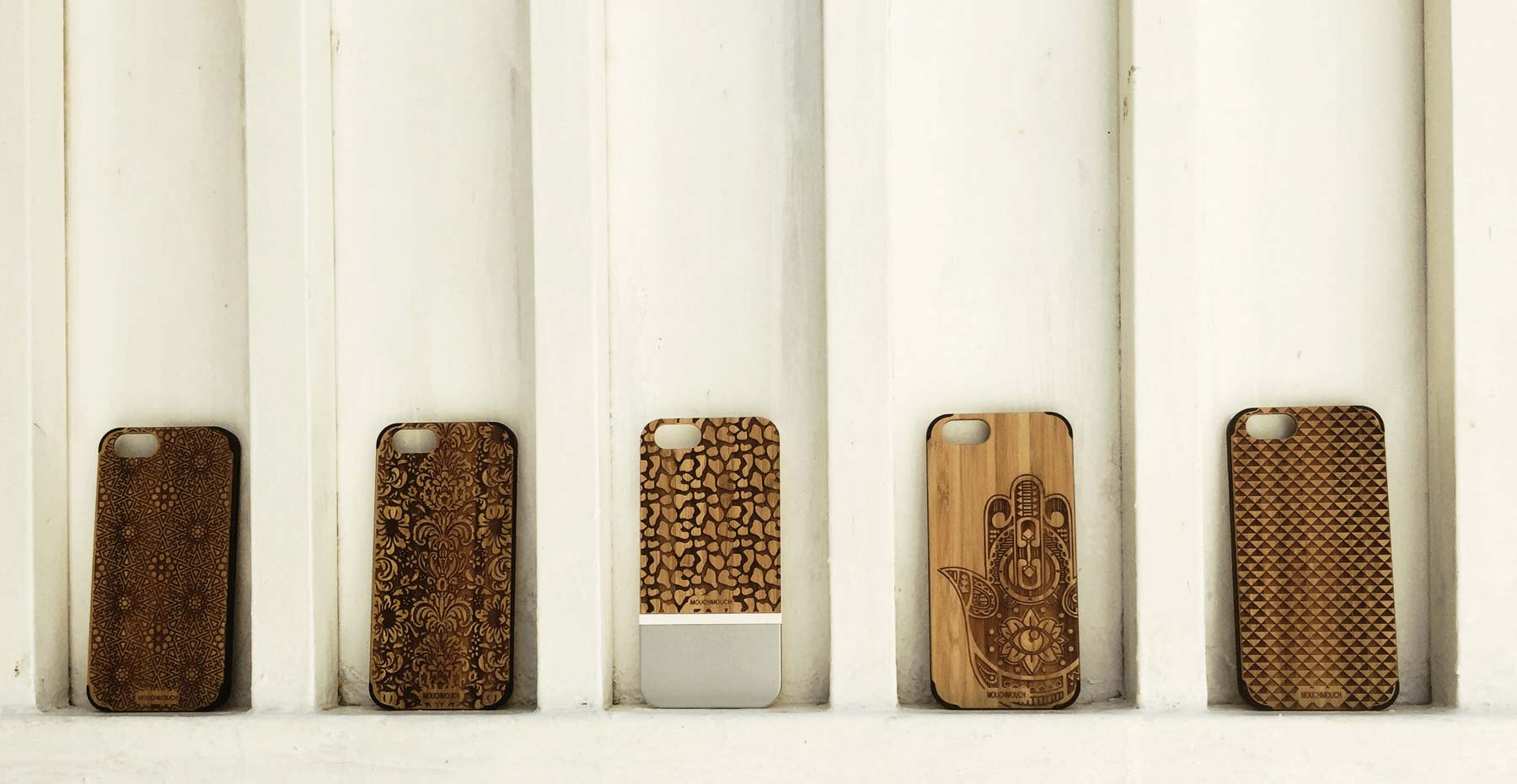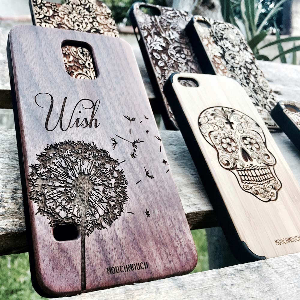 These custom iPhone cases created from wood by Mouchmouch Designs are beautiful yet sustainable objects of everyday use that can be engraved with a wide range of custom designs as well as corporate logos, upon request.
