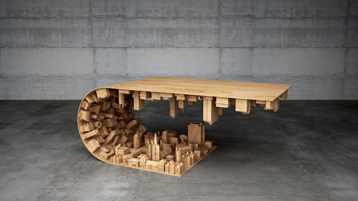 Realized by Cyprus-based designer Stelios Mousarris, the ‘Wave city’ table bends a landscape of buildings in half, using the overlapping surface as the tabletop. Its designย was inspired by the Tsunami waves, combining something organic (nature) with something man-made (constructions). The movement of waves is the theme that dominates in this piece.