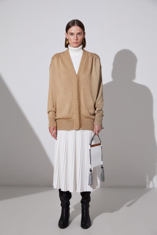 The embroideries of the Evzones costume can easily be recognized on the sleeves of Merino wool coats. Rich embroidered cords of Fermeli, the vest of the Evzones, adorn sweaters in bright colors. Vests made of Virgin Wool with embroideries of Seguna, the sleeveless traditional coat of Epirus region, along with rich pleats on wide sleeves, inspired by the traditional Foustanela, are the elements of a special and atmospheric Collection.
