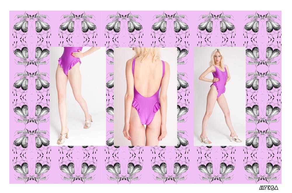 In Myksaโs first swimwear collection, the 80โs influences are certainly obvious. โWe believe in the constant values and the romanticism of the past. Moreover a large part of the project is our muse Carol Doda. She was a topless dancer with activity in San Francisco (California) since 1960 and during 1980. Pioneering of the time, she became known as the first topless show woman and a very SEXY gal. Our SS16 muse was not picked by chance. It is our belief that the element of sensuality is something missing from the everyday life of modern women. Unfortunately the word sexy is connected with inelegance in our society, two elements which for sure are not the same. We urge women to experiment with their female side and feel comfortable with their perfect imperfectionsโ.