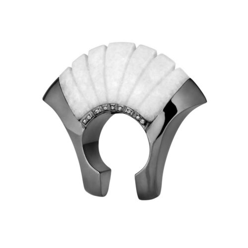 Aspiring to create precious pieces of high quality the designer, after teaching herself the art of stone carving and with the valuable support of her stone suppliers Pnevmatikos Marble, handcrafts each piece of stone individually. With respect to the properties and the limitations of marble, each design requires hours of fabrication, absolute precision and the finest goldsmith craftsmanship in order for Ioanna Souflia to offer an exceptional piece where black gold and Thasos marble co-exist in a symbiotic relationship.