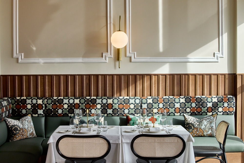 The interiors were designed to echo the menu created by award-winning chef, Dimitris Tasioulas. The main design aim was to respect the building’s architectural heritage while anchoring it to the present day. Striving to maintain its authenticity, from the intricate floor tiles to the impressive crown mouldings and trim on the ceilings and to the elegant murals, the restoration process followed the same line of preserving originality. Structural elements in the interior and exterior were also preserved and restored, almost entirely, from the marble staircase to the cast iron railings and the wooden wall mouldings. Parts of the walls in the lobby were painted entirely by hand, creating elaborate patterns that pay homage to the mural that was discovered during the restoration process. Elegant decorative elements from the past as well as from European bistros are injected throughout for an old-world nod to the modern, urban aesthetic. An additional “hidden” evergreen courtyard is available for guests to enjoy.