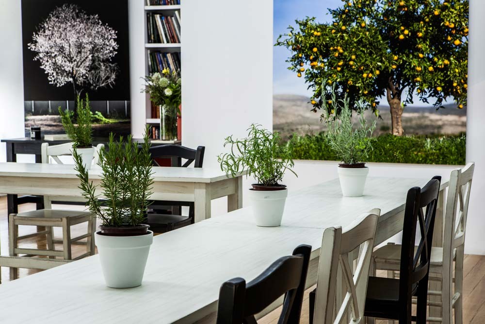 The Apivita Experience Store is an innovative, multi-space retail store in the center of Athens, a focal point for health products with a unique atmosphere rich in artistic elements and details. The store has been designed by architect Irene Bourlou and is nestled in the area of Kolonaki, in an imposing neoclassical building. The exterior door and the registry area are both custom-designed projects by sculptor Nikos Yiorgos Papoutsidis. The ground floor is dominated by a large ‘filoxenia’ table made of wooden bee hives, where visitors are treated to hot tea and honey. In the middle, an impressive olive tree, by sculptor Konstantinos Valaes, is a symbol for wisdom, knowledge and Greek nature.