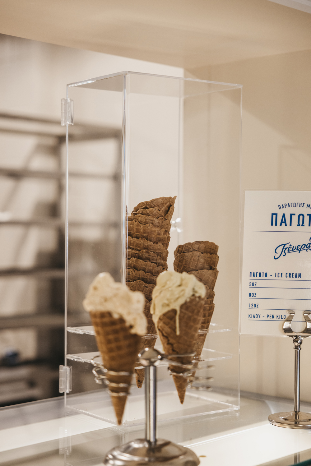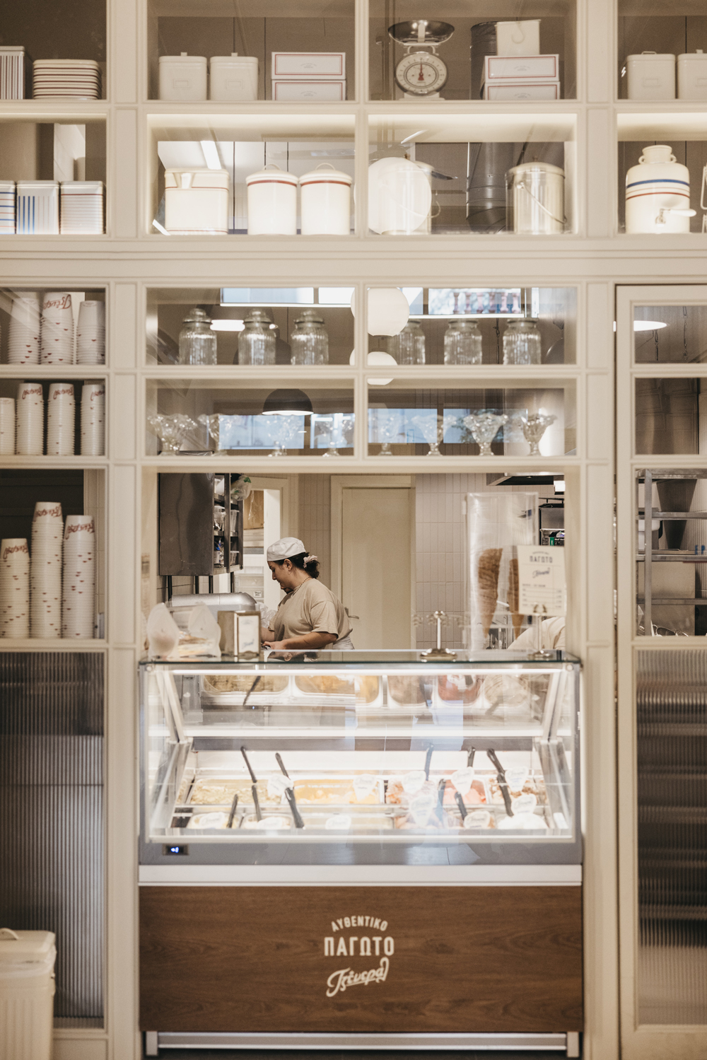 On Pavlou Mela street, Thessaloniki gains a new haunt for the sweet-toothed. Tzeneral is the latest opening from the ERGON family, a pastry shop that dusts off the city’s heritage desserts and reintroduces them with flair. Behind its 70s-tinged façade, the counter fills daily with bougatsa layered in handmade pastry, syrup-soaked pans, light creams and ice cream made from fresh milk and seasonal fruit. The workshop is open, the craft visible, with pastry chef Martin Kitan leading the charge under the eye of ERGON’s culinary director Panagiotis Xanthis. Design is courtesy of ERGON Atelier, which has spun nostalgia into a room that feels both familiar and fresh, a nod to the days when pastry shops were fixtures for post-theatre gatherings or early-morning rituals. Tzeneral is less about invention than careful reintroduction, giving old favorites their rightful place in the present. Think of it as a sweet rendezvous in the heart of Thessaloniki.