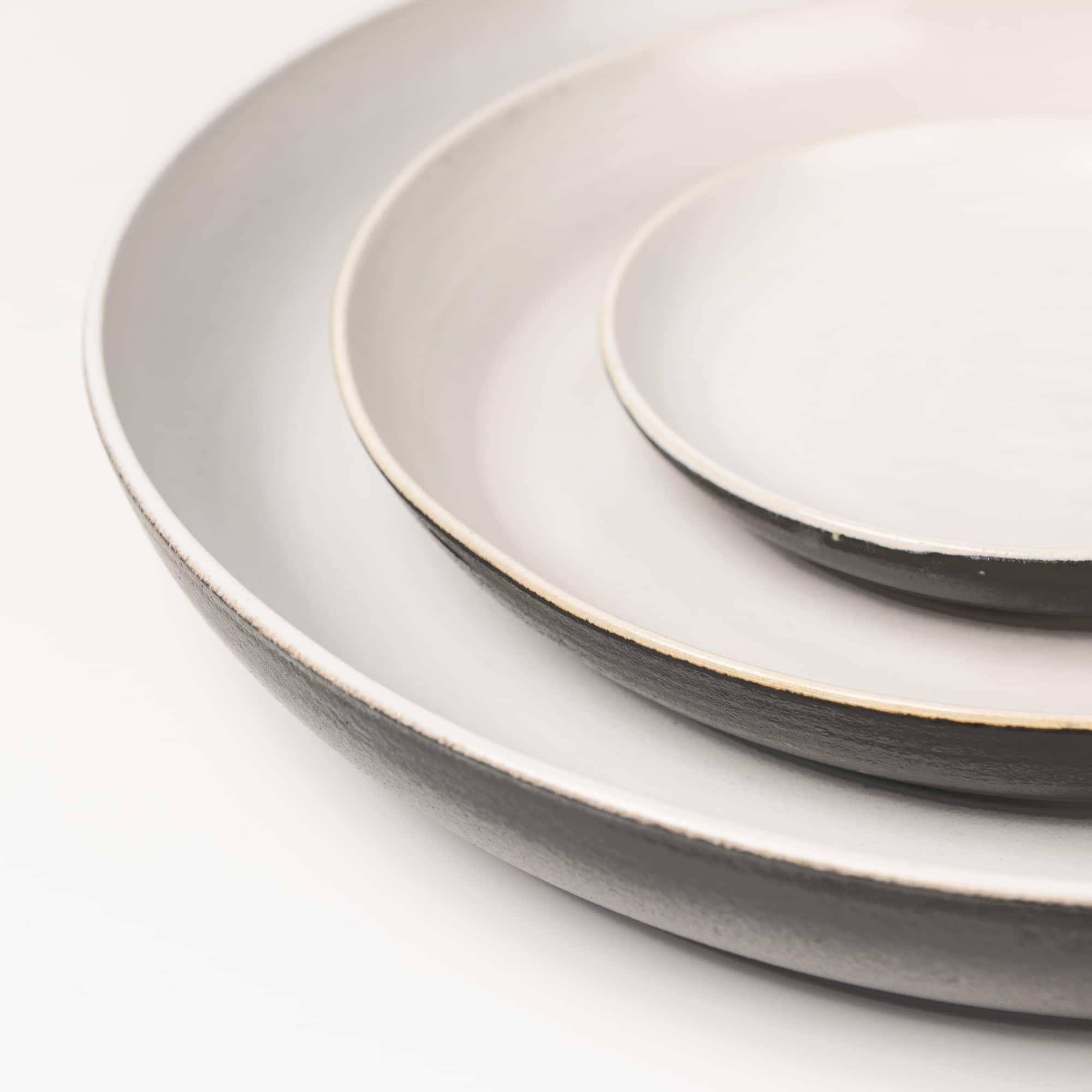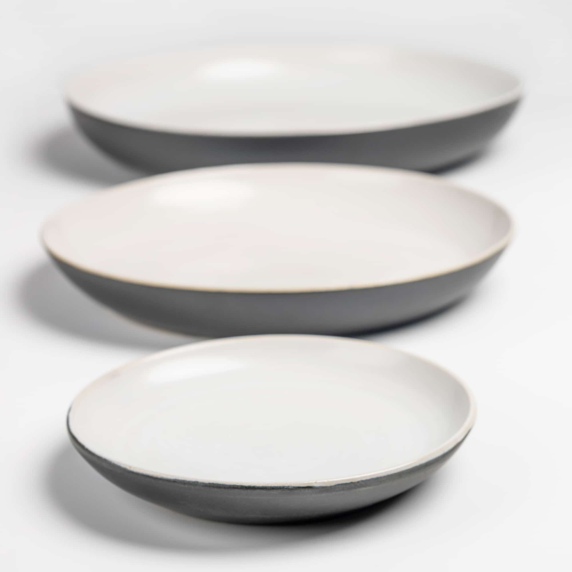 A versatile trio for everyday dining. This handcrafted ceramic bowl set balances contrast and function, with a black exterior and warm beige interior.
