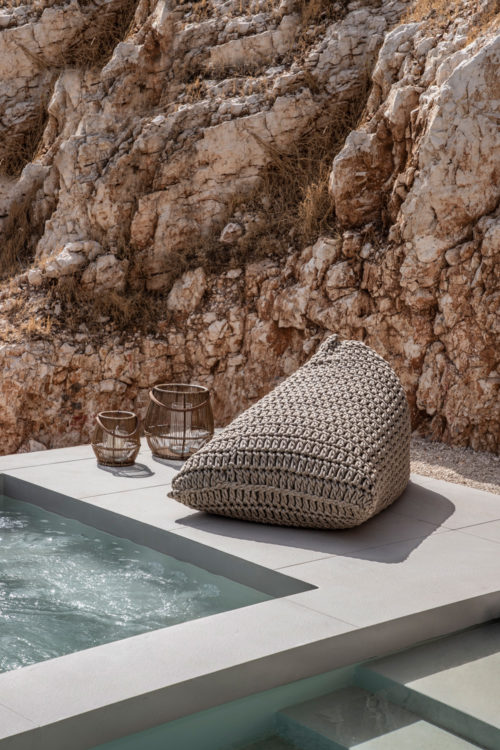 Built using the natural elements of the environment, Kleoniki wanted to retain the rugged, natural beauty of the island whileย elevating the experience to one of pureย luxury.ย ย Eachย villaย is constructed usingย native stone, preserved wood and organic textiles. ย This minimalist aesthetic design creates a timeless feel while the comforts like the fully-stocked kitchen, outdoor stone shower, private infinity pool, jacuzzi and fire pit create an environment of grandeur. ย The result is an elegant, private sanctuary where we invite you to relax, be calm and enjoy all the island has to offer.