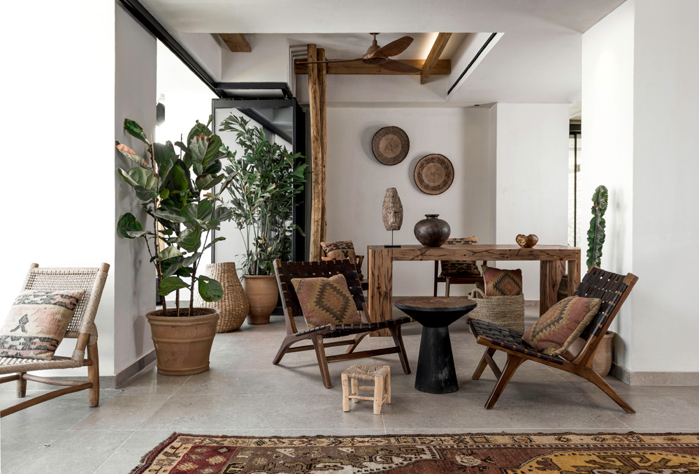 At every level the layout of Syntopia โย from the orientation of its balconies to the expansive poolside lounge teepee, plus its border ofย lush tropical foliage and cacti โย strives to evoke a vibe of seamless transition between spaces, all the while harmonising with the idyllic Cretan surroundings.